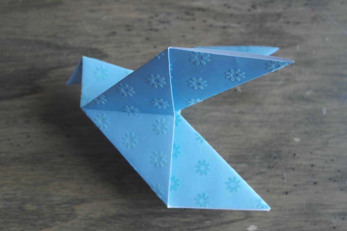 Origami Fold 12 – Copy Previous Next Published April 11, 2021 at 1200 × 800 in #AtoZChallenge | Origami peace doves to add some whimsy to my windows Your dove is starting to take shape.