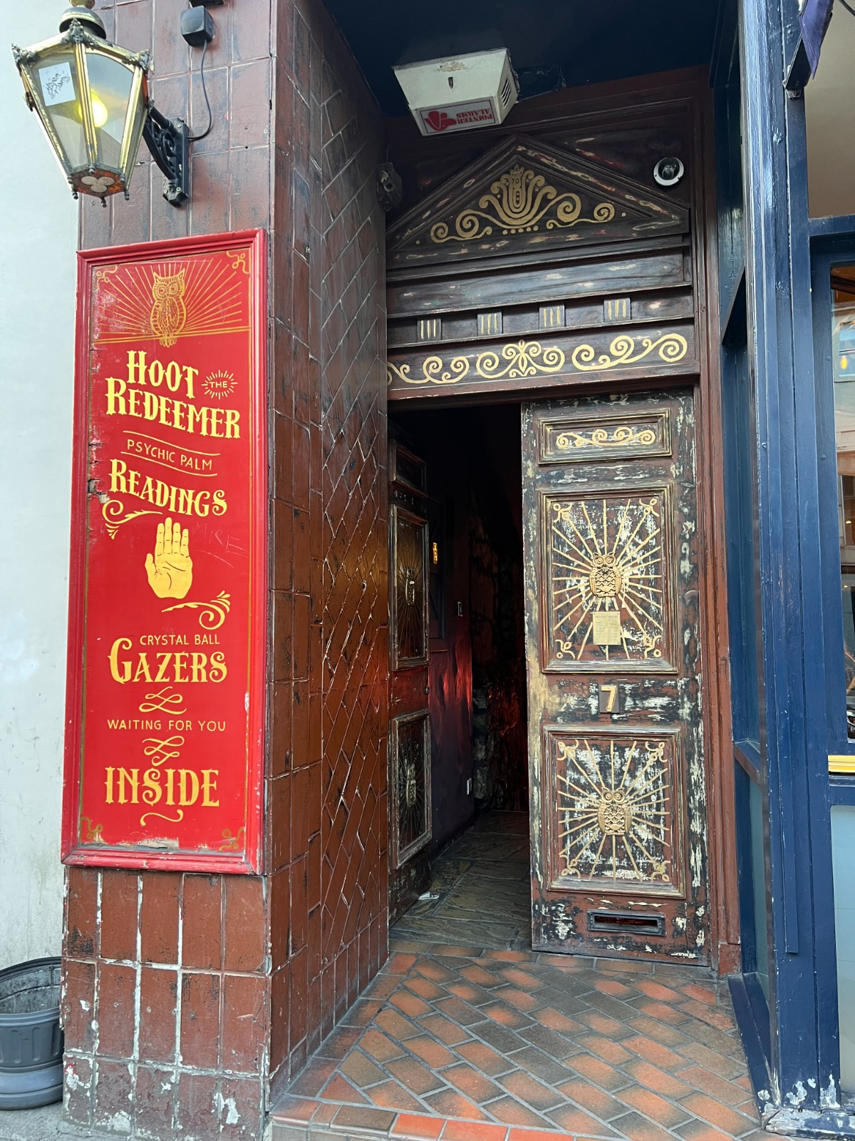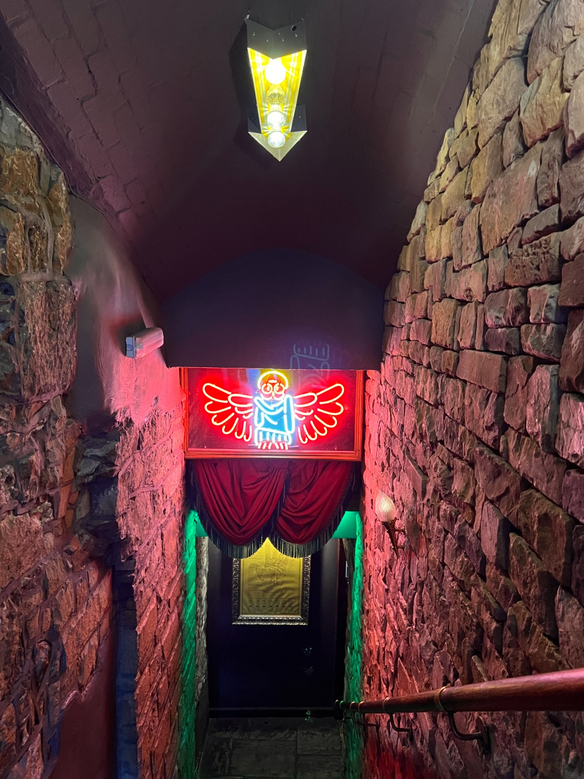 After working from our hotel lobby the rest of the day, we headed to Hoot the Redeemer for some pre-theatre drinks. Walking down into the basement level bar, you’re immediately met with an art deco speak-easy crossed with a carnival vibe. A repurposed arcade claw machine sits against one wall where a three breasted temptress beckons you under a Pinch‘n Sip sign to let fate pick your drink flavors for the evening.