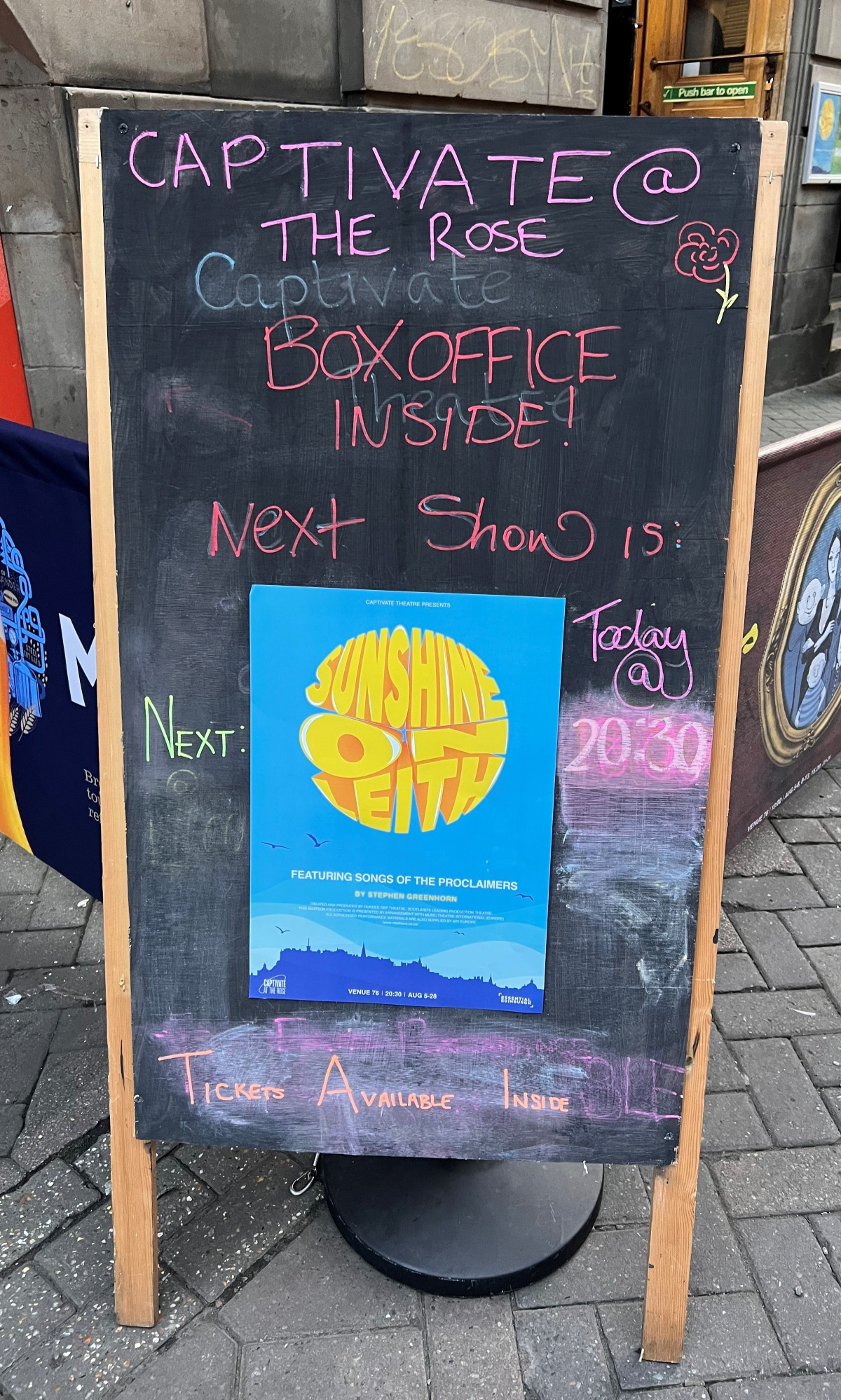 As I explored the Fringe shows mapping out which ones we would attend during our visit, I was overjoyed to discover that the Rose Theatre was showing Sunshine on Leith. The album of my youth had been turned into a play completed with all the songs I obsessed over all those years ago. I bought tickets immediately for our first night in Edinburgh.